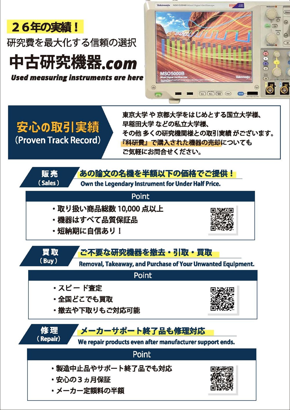 2. 研究機器の売却・引取・中古販売