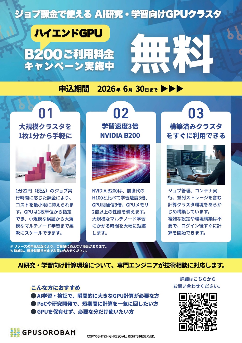 1. ハイエンドGPU「B200」で高負荷解析を高速化!無料キャンペーン